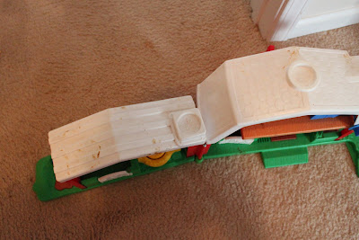 I came back upstairs a few minutes later and noticed the smell was still there. I started checking rooms. Nothing. Started checking the toy drawer in the hall. Nothing. Then I notice the little people farm.....and the brown finger prints. You see them?
